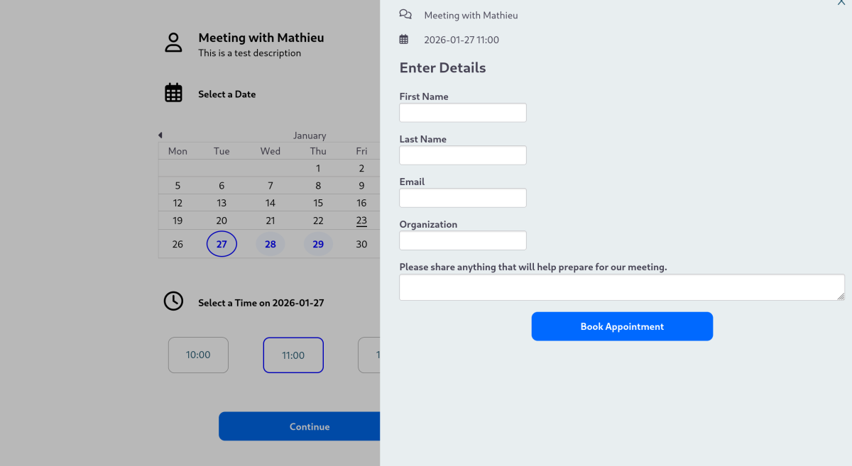 Book a meeting (or reserve something online), optionally using CiviBooking.